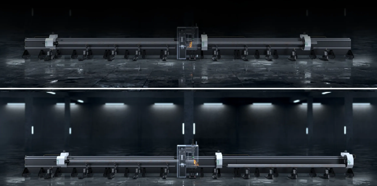 “2+2” dörtlü ayna kesme modu, eş zamanlı yükleme ve boşaltma sağlayarak üretim akışını kesintisiz tutar ve operasyonel verimliliği artırır.